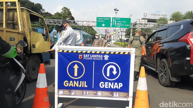 Akhir pekan ini, polisi menerapkan ganjil genap menuju kawasan Puncak, Bogor. Salah satu titiknya adalah di Simpang, Gadog.