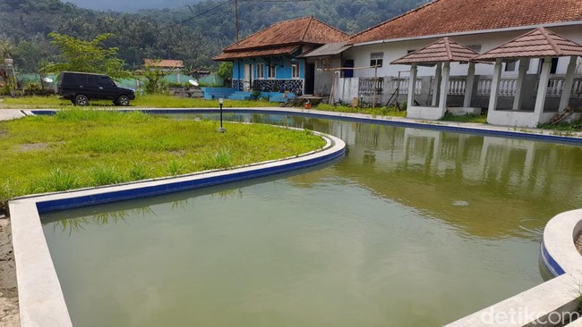 Ada dua buah kolam pemandian air hangat dan satu kolam jacuzzi yang dibiarkan terbengkalai begitu saja. Kedua airnya tampak kotor berikut sekelilingnya dipenuhi ilalang dan rumput liar.