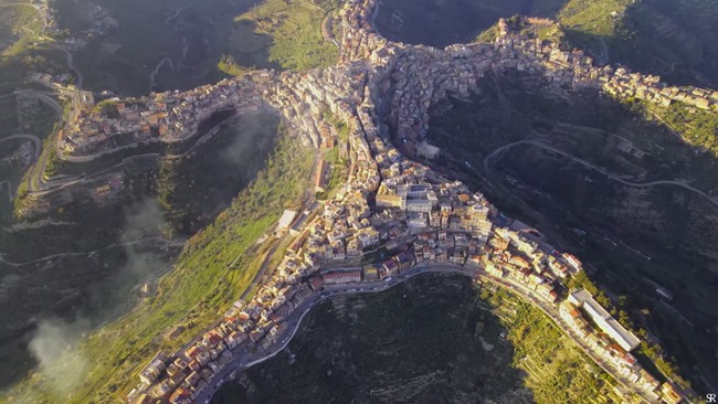 Sebuah kota di Sisilia, Italia memiliki bentuk unik. Jika dipotret dari udara, bentuknya menyerupai manusia yang sedang telentang.