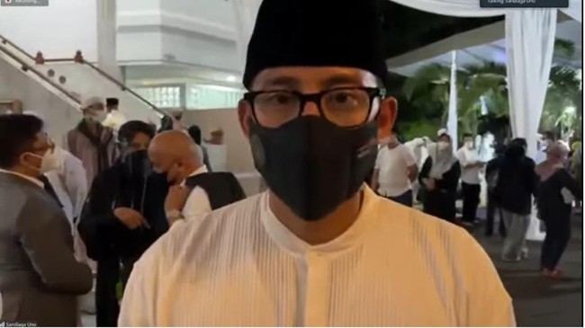 Setelah itu, Sandiaga juga memberi sepatah dua patah kata dalam prosesi pemakaman yang disiarkan secara daring Minggu malam ini.
