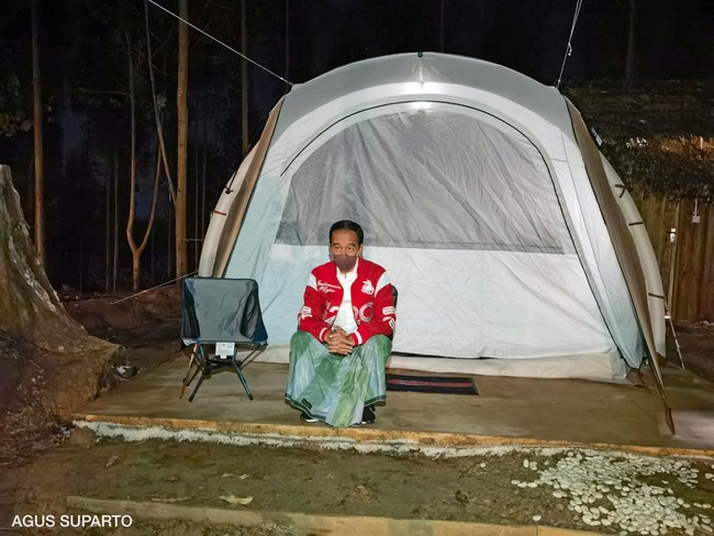 Presiden Joko Widodo (Jokowi) menginap di tenda di IKN Nusantara. Perlengkapan hingga taburan garam di sekelilingnya jadi sorotan.
