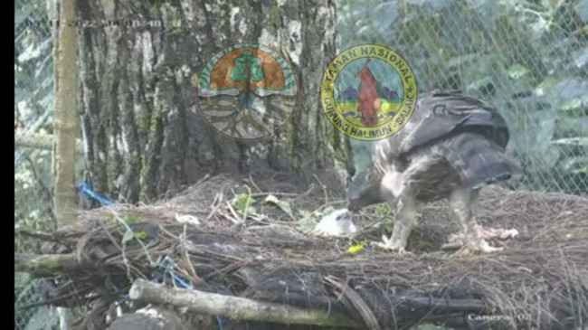 Kepala Balai TNGHS, Ahmad Munawir pada keterangan tertulis menyampaikan bahwa proses pengeraman telur oleh induk Elang Jawa hingga menetas, terpantau melalui teknologi dengan memasang kamera CCTV di kandang rehabilitasi.
