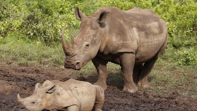 Kedua, badak putih (Ceratotherium simum). Jenis badak ini hidup di bagian utara dan selatan benua Afrika. Status konservasinya adalah hampir terancam.