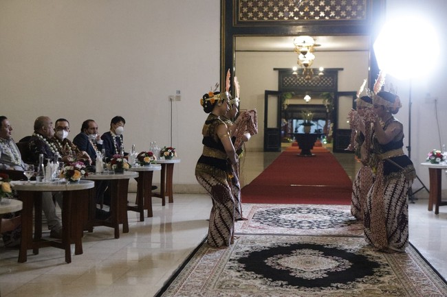 Jamuan makan malam itu turut dimeriahkan dengan sajian tari klasik Srimpi Pandhelori yang dibawakan oleh sanggar tari Royal Ambarrukmo. Srimpi Pandhelori merupakan tari klasik Yogyakarta yang bertemakan nilai-nilai baik dan buruk dalam kehidupan manusia. Tari ini diciptakan pada masa Sri Sultan Hamengku Buwono VII yang berkuasa pada tahun 1877-1921.