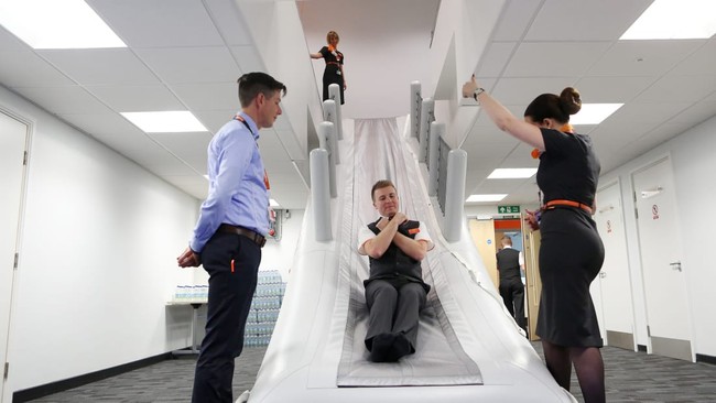 Semua penumpang pesawat pasti diberitahukan prosedur keselamatan sebelum take off. Evakuasi melalui pintu darurat biasanya melibatkan seluncur atau perosotan tiup. Beginilah evolusinya.