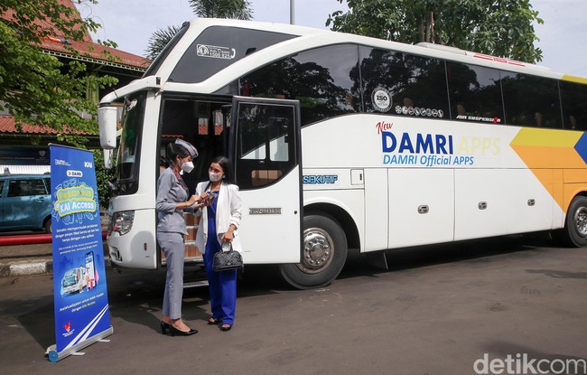 Traveler yang ingin mudik naik bus Damri wajib mengikuti aturan terbaru. Ini termasuk syarat vaksin dan tes COVID-19.