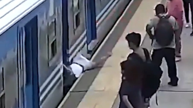 Wanita yang diketahui bernama Candela itu terjatuh ke rel kereta komuter di sebuah stasiun yang berada di pinggiran kota Buenos Aires, Argentina. Candela terjatuh ke rel saat ada kereta api yang masih berjalan mendekat ke stasiun.