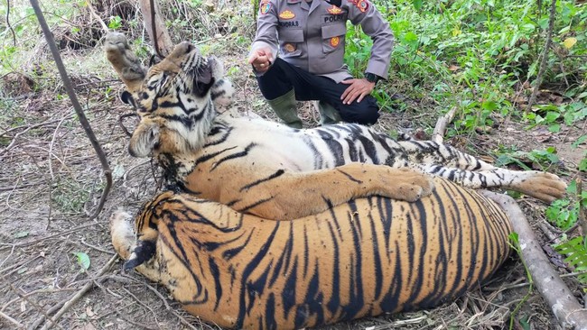 "Ketiga harimau mati terkena jerat di leher. Dua individu harimau berjenis kelamin jantan dan satu betina," kata Kasat Reskrim Polres Aceh Timur AKP Miftahuda Dizha Fezuono kepada wartawan, Selasa (26/4/2022).