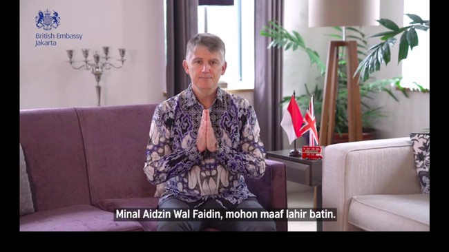 "Atas nama pemerintah Inggris, saya ucapkan Selamat Hari Raya Idul Fitri kepada seluruh masyarakat Indonesia yang merayakannya. Minal Aidzin Wal Faidin, mohon maaf lahir batin," tutupnya.