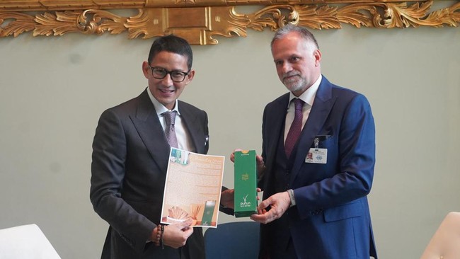 Menteri Pariwisata dan Ekonomi Kreatif (Menparekraf) Sandiaga Uno menunjukkan salah satu contoh konkret wisata berkelanjutan yang Indonesia banget. Yakni, sedotan purun.