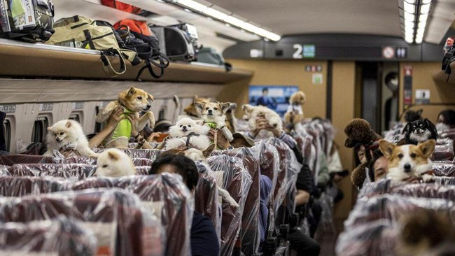 Untuk pertama kalinya, 21 ekor anjing diizinkan untuk bebas berkeliaran di shinkansen pada Sabtu (21/5/2022). Ini bukan gerbong biasa, tetapi gerbong kereta khusus yang ramah hewan peliharaan. Uji coba itu dilakukan oleh Japan Railways (JR).
