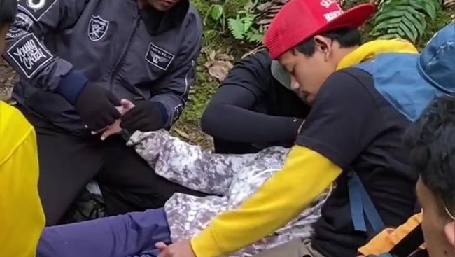 Dalam video berdurasi satu menit dua detik itu tampak seorang pendaki perempuan itu tergeletak di tengah jalur pendakian dan dikelilingi pendaki lainnya.