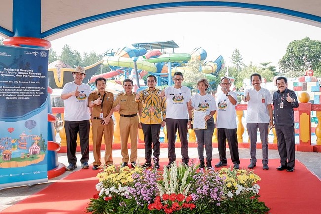 Untuk menekan risiko kecelakaan di taman rekreasi Menparekraf Sandiaga Uno bersama pengusaha taman rekreasi mendeklarasikan taman bermain yang aman, nyaman dan menyenangkan.