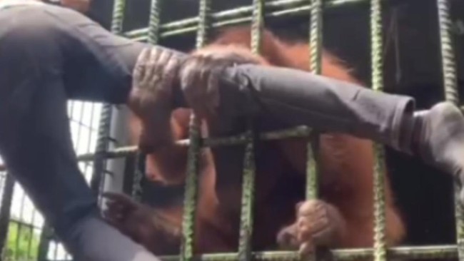 Pria itu bernama Hasan Arifin, warga Manyar Sakti Pekanbaru. Dalam video itu, dia amat tersiksa saat seekor orang utan menarik baju kemudian kakinya hingga dia menempel di jeruji kandang. Rekan yang berusaha menolong juga ikut ditarik-tarik oleh si orang utan.