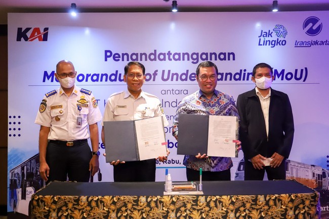 Dalam rilisnya, Rabu (15/6/2022, KAI menyebut kolaborasi itu meliputi sistem integrasi antarmoda, pengembangan usaha transportasi terpadu, dan pengembangan kawasan berorientasi transit. Kerja sama tersebut dituangkan dalam nota kesepahaman yang ditandatangani langsung oleh Direktur Utama PT Transjakarta M. Yana Aditya dan Direktur Utama KAI Didiek Hartantyo di Hotel Borobudur, Jakarta Pusat hari ini.