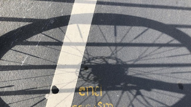 "Pastikan pengemudi dan pemotor dapat melihat Anda. Juga, pastikan Anda memasang bantalan dalam celana gowes atau penutup sadel wol merino yang bagus seperti ini. Dengan ini gowes tanpa pakaian pun tetap nyaman," dia menjelaskan.