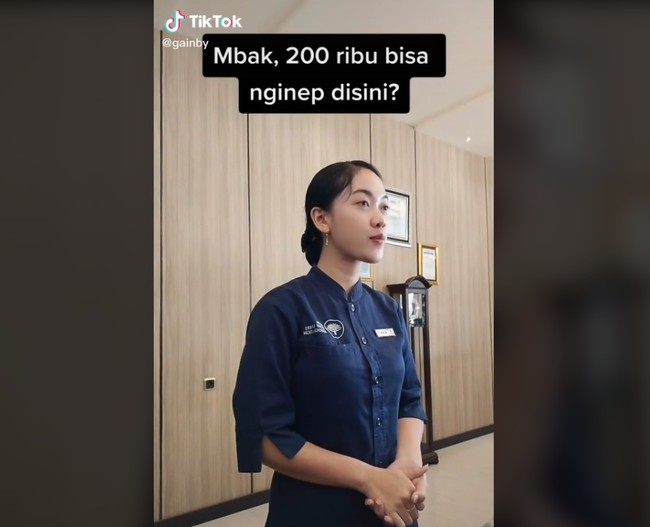 "Mbak, 200 ribu bisa nginep di sini? Waktu kecil anak saya pengen nginep di hotel tapi saya ga punya uang. Besok dia nikah, saya mau kasih hadiah nginep di hotel," ujar ibu itu.