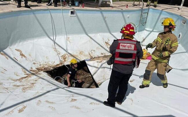 Sementara itu, pihak berwenang memeriksa daerah setempat untuk mencari lubang runtuhan lainnya dan telah mengirim helikopter untuk membantu proses itu. Di sisi lain, polisi juga menyelidiki penyebab rusaknya kolam renang tersebut.