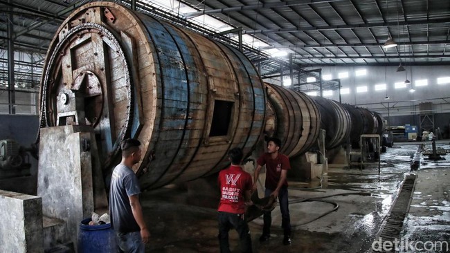 Pada tahap keempat, kulit-kulit itu akan melalui proses soaking. Ada sebuah drum berputar besar yang akan menampungnya dan proses ini dilakukan pula pengapuran.
