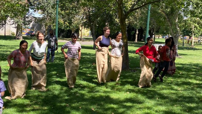 Peringatan HUT kemerdekaan Republik Indonesia ke-77 di Amerika Serikat berlangsung sangat meriah. Bule-bule asyik ikut balap karung dan makan kerupuk.