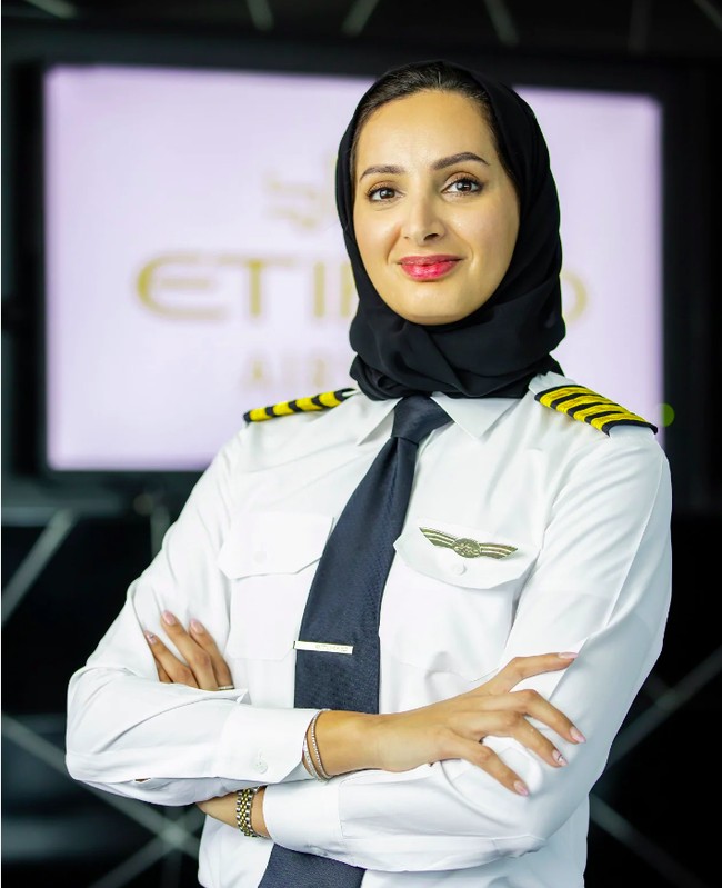 Aisha Al Mansoori, kapten berusia 33 tahun yang bergabung dalam program Percontohan Kadet Etihad pada Oktober 2007 lalu di Etihad Airways. Aisha merupakan salah satu dari hanya dua wanita Nasional UEA dalam angkatannya.