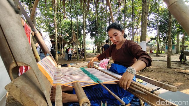 Di lokasi, pengunjung juga bisa melihat dan merasakan langsung proses menenun kain Baduy. Salah satu pelajar bernama Kalina menceritakan pengalamannya.