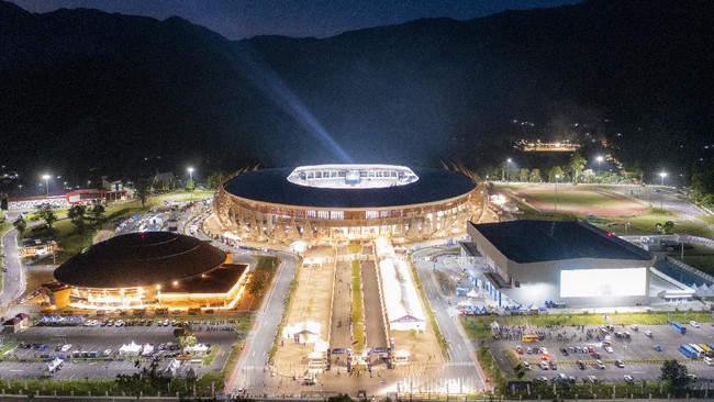 Papua memiliki stadion megah, Stadion Lukas Enembe. Kini, gubernur yang jadi nama stadion itu tersangkut kasus korupsi.