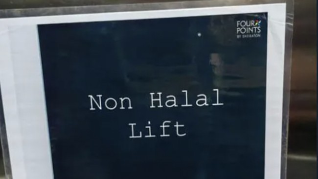 Sebuah hotel memasang label 'Lift Non Halal' di salah satu liftnya. Apa maksud pemasangan label tersebut ya?