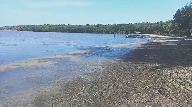 Bahkan pada bulan Juni lalu, pasir tertutup sepenuhnya oleh lumut sutra tersebut. Semua biota yang ada di pantai ini mati dan membusuk. Pasir yang dulunya putih pun berubah jadi hitam.