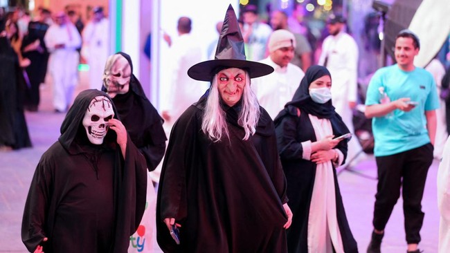 Warga Arab Saudi ramai memperdebatkan soal halal-haram perayaan Halloween yang digelar di Ibu Kota Riyadh pekan lalu.