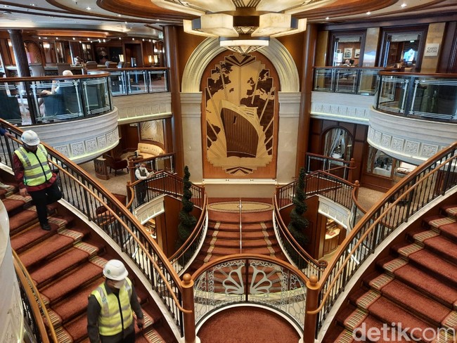 detikcom dapat berasakan suasana kapal pesiar yang bak hotel bintang 5. Interior kapal didesain dengan gaya klasik. Tak lupa di sana juga berjejer foto-foto keluarga Kerajaan Inggris, termasuk mendiang Ratu Elizabeth II dan Putri Diana.