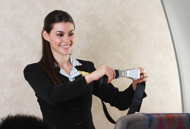 Pramugari akan memberikan instruksi bagaimana cara memakai sabuk pengaman, karena terkadang ada penumpang yang lupa atau kesulitan untuk memakainya.