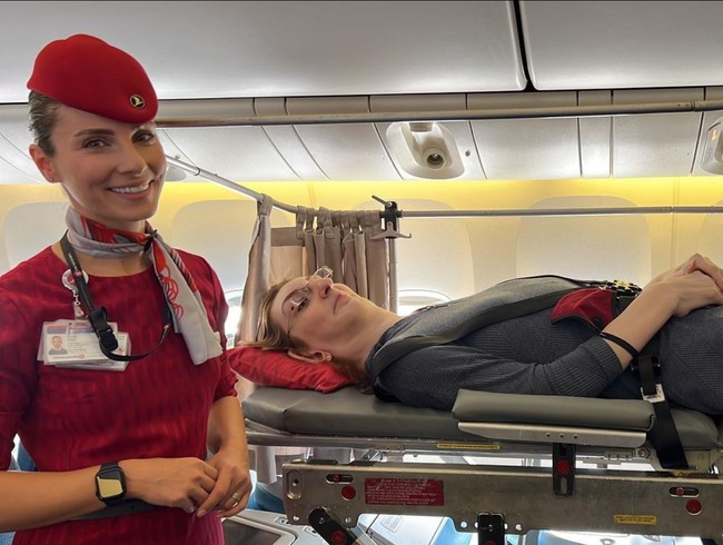 Karena tingginya, Gelgi tidak bisa duduk di kabin pesawat. Untuk menyiasatinya, Turkish Airlines rela mencopot enam kursi pesawat dan menggantinya dengan tandu.