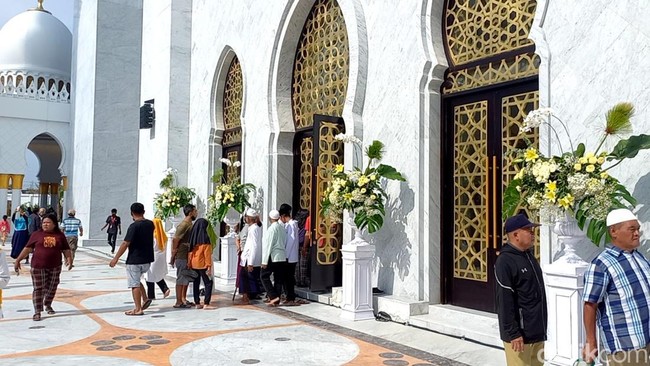 Bunga itu dipasang untuk mempercantik masjid saat diresmikan oleh Presiden UEA Mohamed Bin Zayed Al Nahyan, dan Presiden Joko Widodo (Jokowi).
