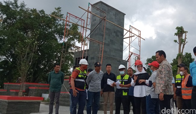 Pantauan detikJateng di lokasi, proyek revitalisasi Alun-alun Klaten belum rampung seluruhnya. Para pekerja masih menyelesaikan lantai dan taman sisi barat dan timur.