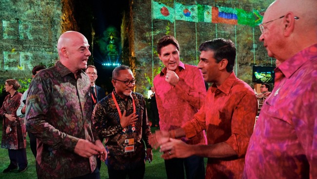 Pakaian Endek Bali yang dikenakan Perdana Menteri Inggris Rishi Sunak, Perdana Menteri Kanada Justin Tredeau, Presiden FIFA Gianni Infantino, Menteri Perdagangan Indonesia Zulkifli Hasan dan pendiri World Economic Forum (WEF) Klaus Martin Schwab dalam gala dinner G20 beberapa waktu lalu sempat diejek oleh YouTuber asal Inggris, Mahyar Tousi.
