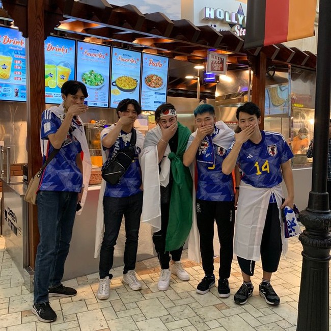 Aksi tutup mulut pemain Jerman sebelum pertandingan itu ternyata dibalas oleh olok-olok fans timnas Jepang. Dari foto yang viral di media sosial Twitter, terlihat ada 5 orang fans timnas Jepang yang berpose tutup mulut ala-ala pemain Jerman.