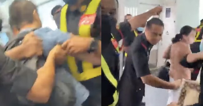 Aksi gontok-gontokan sempat terjadi. Petugas keamanan sebanyak 6-7 orang pun dikerahkan untuk mengawal Susan dan suaminya keluar pesawat. Namun akhirnya, Susan dan seluruh anggota keluarganya keluar dari pesawat dan tidak jadi terbang bersama AirAsia.
