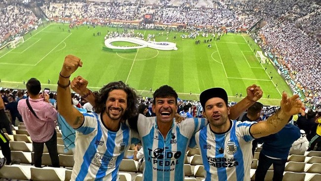 Mereka sudah berada di Qatar sejak opening ceremony Piala Dunia. Mereka selalu menyaksikan laga-laga timnas Argentina.