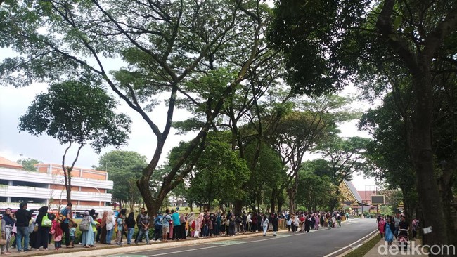 Taman Mini Indonesia Indah (TMII) kebanjiran pengunjung pada Sabtu (24/12/2022). Tetapi, jumlah shuttle bus tidak sebanding sehingga pengunjung antre panjang.