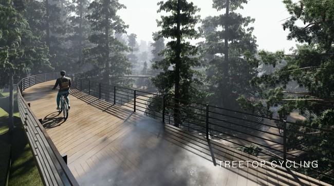 "Tree top cycling, bersepeda di antara pepohonan, itu atraksi. Tahun depan rutenya 600 meter dulu untuk yang sepeda tapi ke depannya panjang itu rutenya," jelasnya.