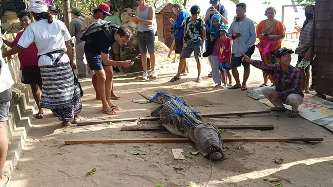 "Pukul 15.30 WITA, buaya berhasil ditangkap dan diikat tanpa ada korban jiwa atau korban luka-luka, dan pukul 15.30 WITA buaya itu dapat diangkut ke mobil rescue BKSDA Bali," kata Agus Budi.