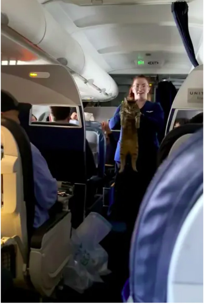 Pramugari itu kembali ke kelas bisnis untuk menangkapnya. Sambil berjalan, pramugari terus bertanya ke penumpang tentang kepemilikan kucing itu.