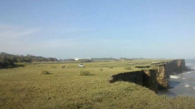 Karena tidak boleh sembarangan mengambil foto di pantai nudis, Juan berfoto di atas tebing. Dia meminta tolong turis lain untuk mengambil fotonya.