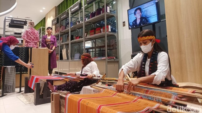detikTravel berkesempatan menyaksikan secara langsung proses menenun kain tenun yang berada di Gedung Sarinah, Jakarta. Pameran tenun secara langsung ini akan berlangsung hingga 29 Januari 2022.