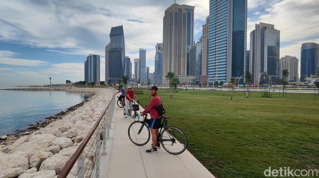 Bersama Pak Riza, petualangan detikTravel tak kalah seru. Kuliner, menjajal lapangan sepakbola di Doha, sampai mengaspal di trek sepeda terpanjang di Qatar deretannya. Tak lupa juga, kami melalui momen bertemu dengan eks presiden Real Madrid, Ramon Calderon.