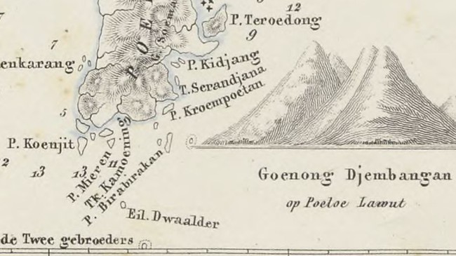 Selain peta bikinan Muller, sumber lain yang memuat Saranjana adalah Kamus Statistik Geografis Hindia Belanda yang ditulis Pieter Johannes Veth. Pada 1869, Veth menulis, "Sarandjana, bagian selatan Poeloe Laut, yakni pulau yang terletak di tenggara Borneo."