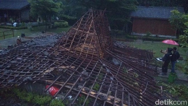 Hujan lebat dan angin kencang menerpa Kecamatan Borobudur, Kabupaten Magelang. Akibatnuya, bangunan joglo utama Balai Ekonomi Desa (Balkondes) di Desa Wanurejo roboh.