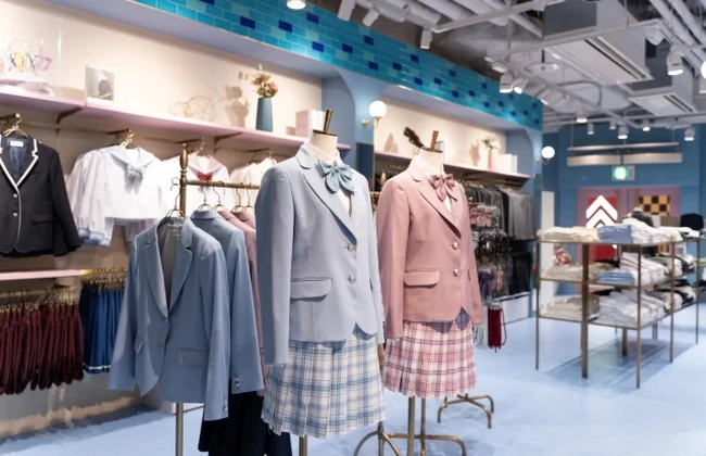 Di sini kamu bisa menemukan sekitar 1.000 item wanita dan pria yang berbeda untuk dipadupadankan dengan seragam pribadi, termasuk rok, celana panjang, blazer, sweater kemeja, pita, dan sepatu. Mereka bahkan memiliki jaket gakuran berkerah lurus jadul. Staf akan membantu pelanggan mengoordinasikan penampilan mereka.