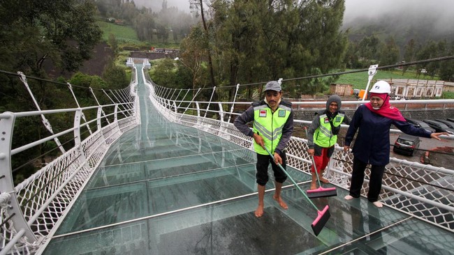 Sejumlah traveler mempertanyakan keamanan jembatan itu menyusul insiden terpelesetnya Gubernur Khofifah saat menjajal jembatan kaca tersebut.